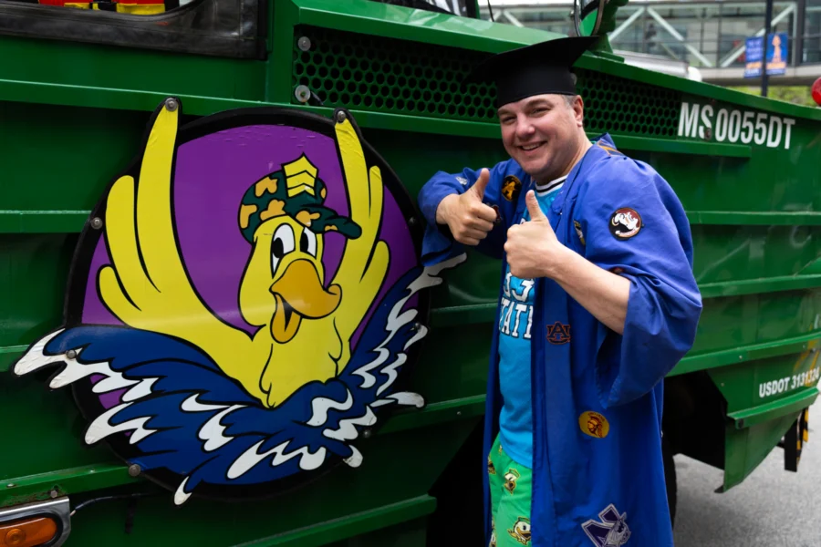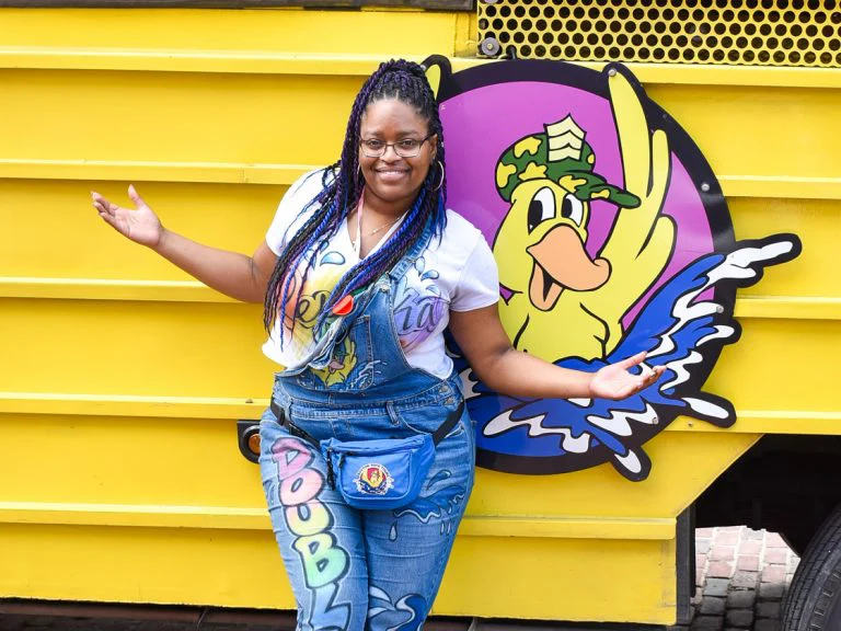 Gloria takes her name from the nickname of our country’s flag, “Old Glory”. With the flag painted on the side of her hull, she is one of the most beautiful ducks in the fleet. The name “Old Glory” comes from the nickname of one specific flag that belonged to Captain Driver from Salem, Massachusetts. This flag was created by Captain Driver’s mother to fly from his ship and measured 10 feet by 17 feet. After moving to Nashville, Tennessee, Captain Driver’s flag became famous as the symbol of victory after the Union soldiers retook control of Nashville during the Civil War.
