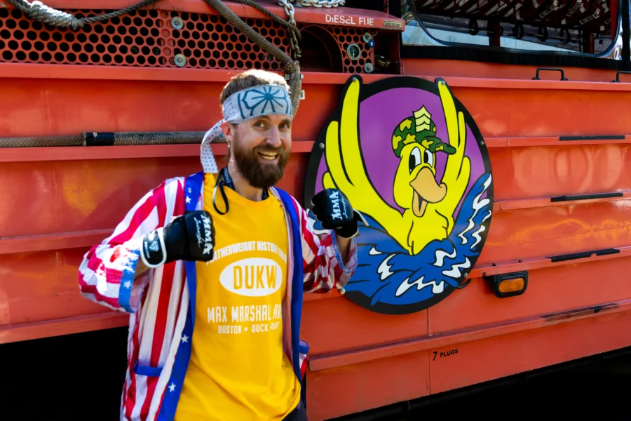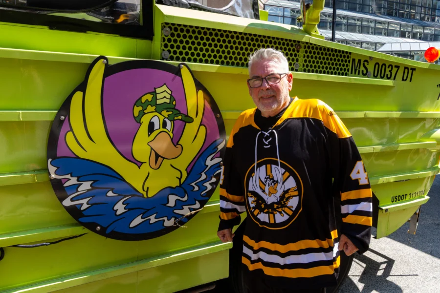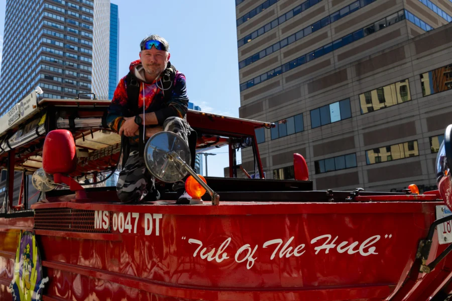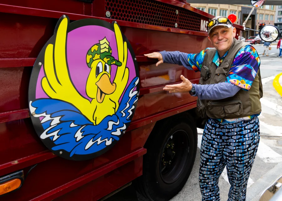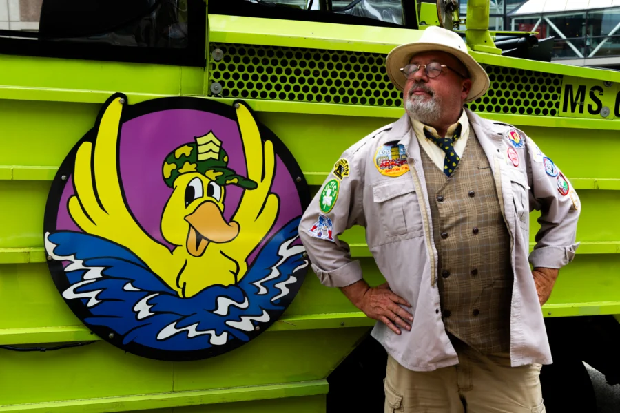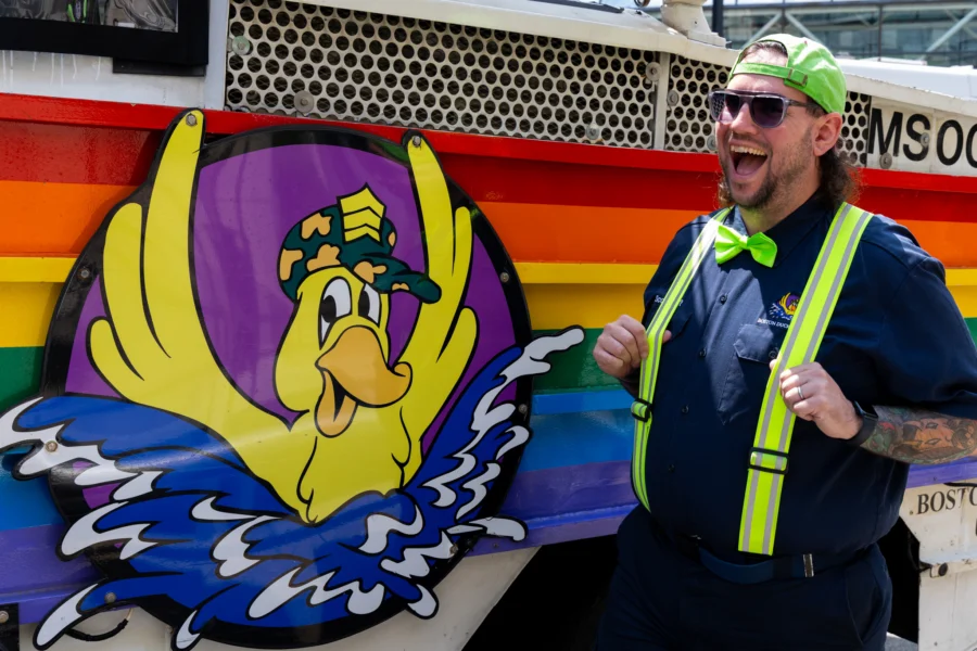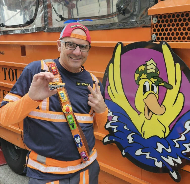 Hi folks, my name is Captain Mack. Got the nickname Mack from driving an 18 wheeler around the city of Boston for 27 years. One day, I’m delivering some cases in Cambridge, near where the Ducks enter the Charles River, and I thought “how cool is that?!” so I retired my delivery boots and put on my Duck boots! Now, for the last 10 years with Boston Duck Tours, I happily get to splash into the river and talk about my beautiful city all day- best decision I ever made!