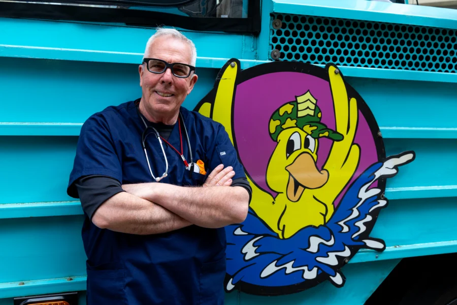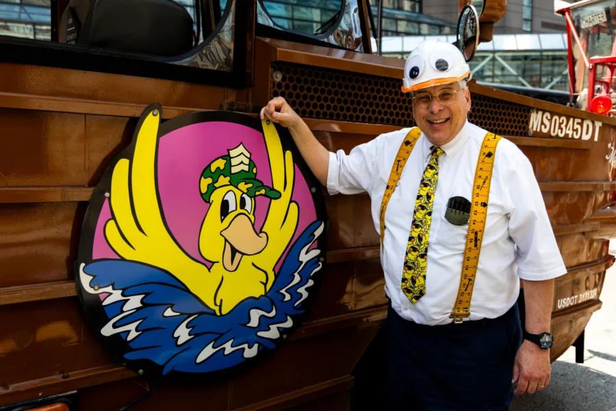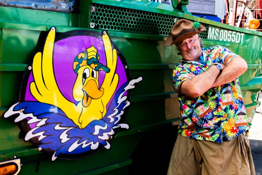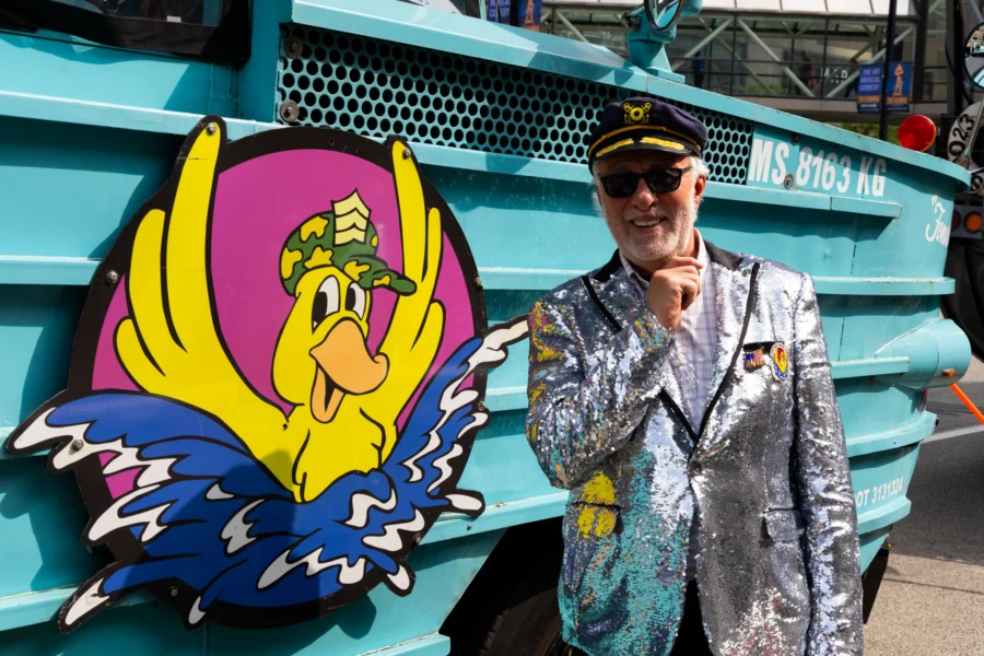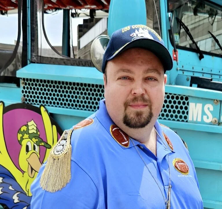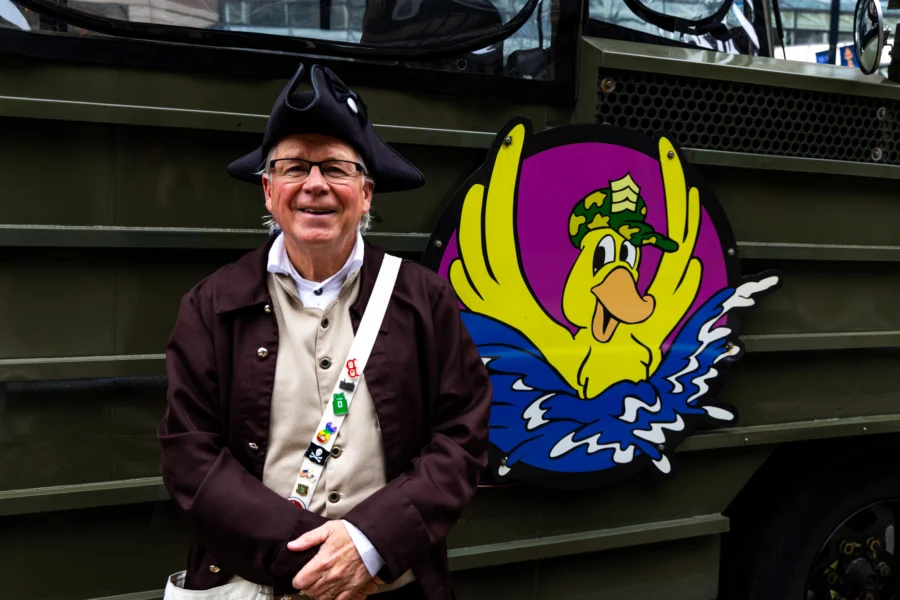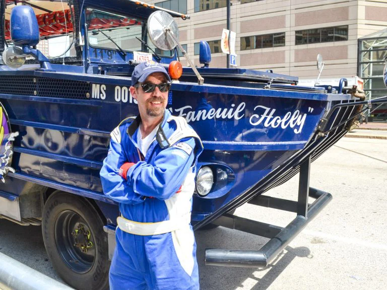 Hi folks, my name is Captain Mack. Got the nickname Mack from driving an 18 wheeler around the city of Boston for 27 years. One day, I’m delivering some cases in Cambridge, near where the Ducks enter the Charles River, and I thought “how cool is that?!” so I retired my delivery boots and put on my Duck boots! Now, for the last 10 years with Boston Duck Tours, I happily get to splash into the river and talk about my beautiful city all day- best decision I ever made!