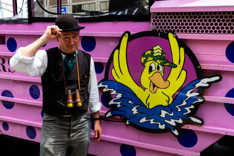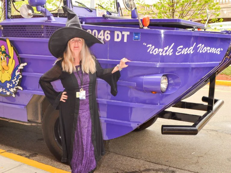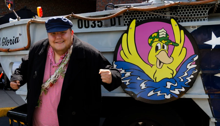 From tricycles to monster trucks, The Wheelman has never won a race. His passion for motor sports led him to Boston, home of the nation’s very first license plates and automobiles. Unfortunately he suffers from tachophobia (fear of speed) and in his constant position of last place, he got to looking around at the scenery and learned all about Boston’s sites! His driver helps keep his tour to 80-minutes as if he were in charge it would be a three hour tour! The job is perfect for him as it has less “tach” and more “quack”.