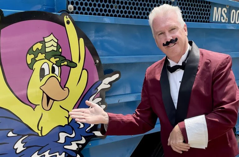 When world-renowned and extremely handsome dinner theater actor, Drake Mallard, ended up in the Charles River, after an incident on his friend’s yacht, he had to swim for land. Exhausted, he crawled ashore on one of the Finger Islands. Luckily, a Boston Duck Tours ConDUCKtor spotted him “washed up,” and gave him a ride back to the dock. When he learned that 600,000 people take Boston Duck Tours each year, he realized this might be the perfect stage for him. He contacted BDT, and accepted a supporting role, with the City of Boston as the star of his show.