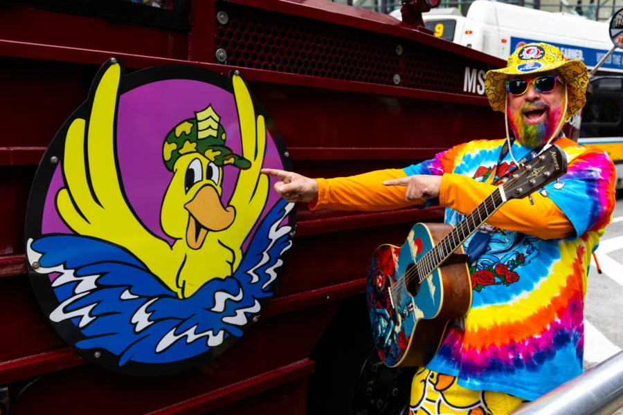 Ripple N. Stillwater lived a grateful life of singing skeletons and dancing bears until he decided to ditch his psychedelic bus in a concert parking lot and join the touring life on our colorful Ducks. From the 1630 Puritan arrival Without a Net and a plan to Go to Heaven, right through the American Beauty of today’s Boston that is Built to Last, Ripple N. Stillwater will show you what a long, strange trip it’s been…