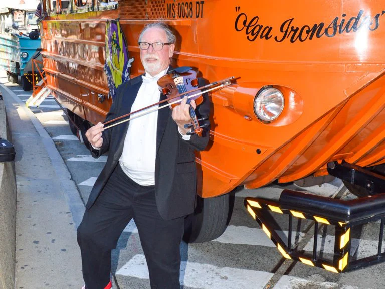 Arthur Fiddler is a musician – a WICKED BAD musician. After his recent (unsolicited) audition at Symphony Hall, the conversation crescendoed into a cacophony that resulted in him being thrown out onto his fermata. As he left Symphony Hall, dejected he came upon a sign and one of our duck stops that said “ConDUCKtors Wanted”. Upon seeing the sign he thought “Of course, if you can’t play – conduct!” Arthur has been conducting sightseeing symphonies of beautiful Boston ever since…