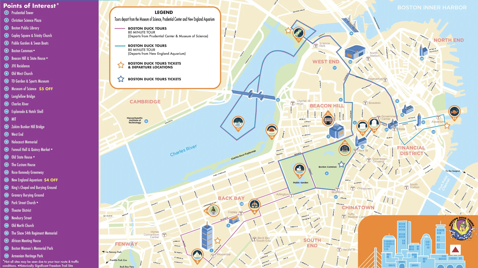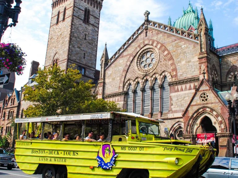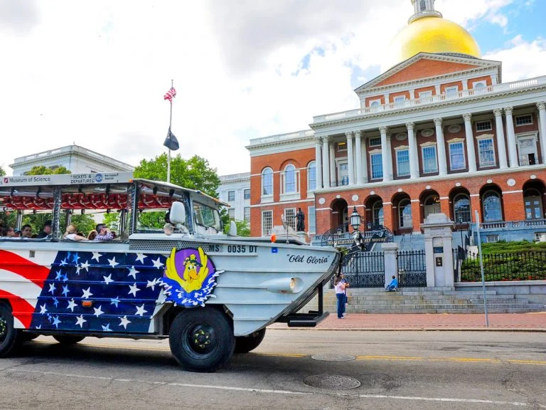 Hop aboard Boston Duck Tours and enjoy a fully narrated and guided, historic tour of Boston in a “DUCK”, a W.W.II style amphibious landing vehicle that travels on land and water. You’ll be greeted by one of our legendary ConDUCKtors, who’ll be narrating your tour. You’ll cruise by all the places that make Boston the birthplace of freedom and a city of firsts, from the golden domed state House to the Boston Common, the historic North End to fashionable Newbury Street, Quincy Market to the Prudential Tower, and more. Just when you think you’ve seen it all, it’s time for a Big Splash as your ConDUCKtor drives the DUCK right into the Charles River for a breathtaking view of the Boston and Cambridge skylines. Come and experience the best introDUCKtion to Boston!