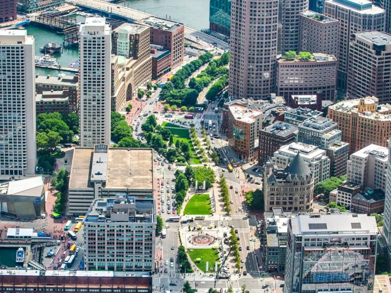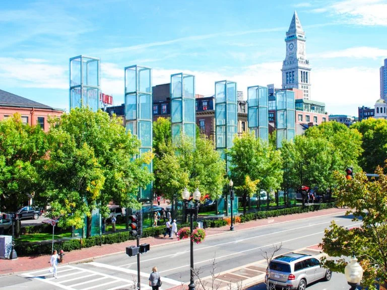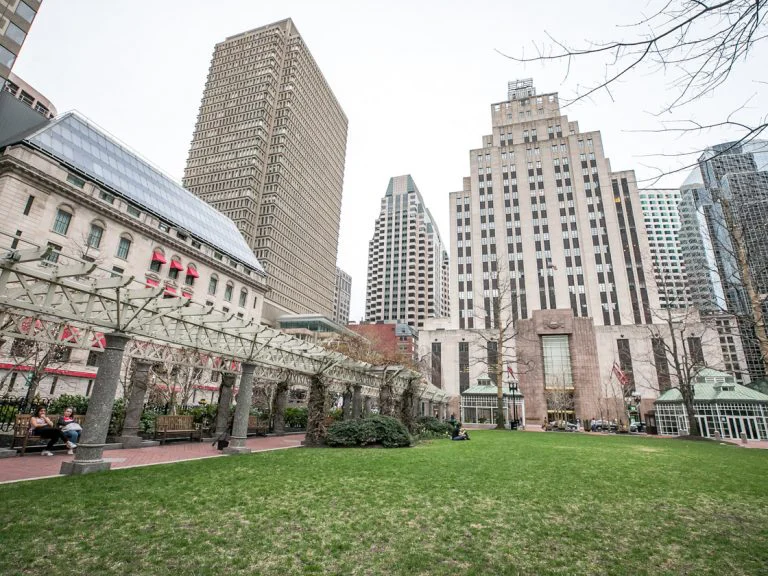 In the center of Post Office Square is the Norman B Leventhal Park. The 1.7 acre park’s centerpiece is a walk-through sculptural fountain. More than a hundred different species of plants, flowers, bushes and trees are within the park.