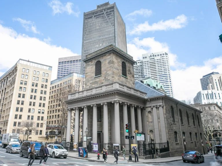 King’s Chapel was the first Anglican Church in Boston. In 1687, Governor Edmund Andros, an Anglican, ordered it built on a corner of the Old Burying Ground. It was a wooden building. In 1754, a new, larger building was completed. The new church was the first granite building in Boston.