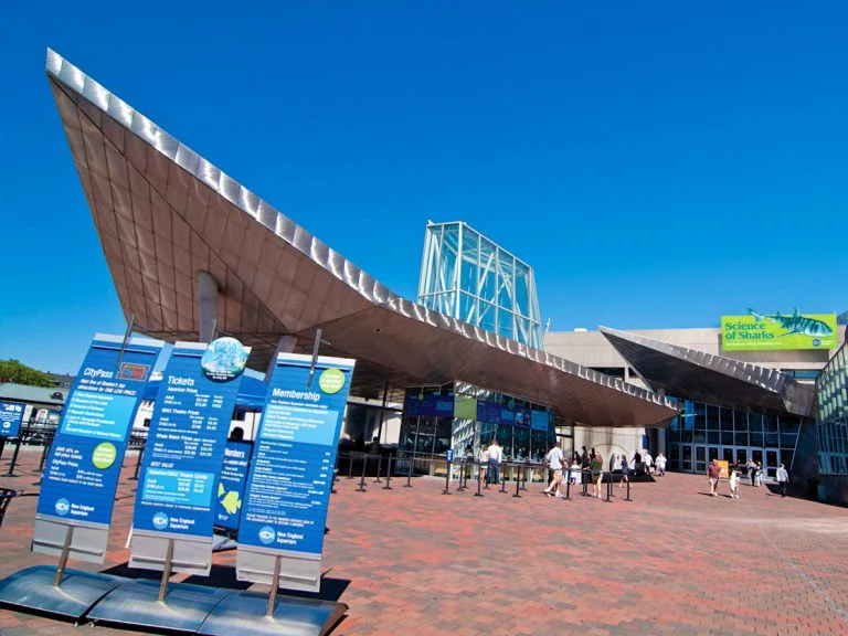 The New England Aquarium first opened to the public in 1969. A main feature of the aquarium is a four story, forty-foot diameter salt-water tank. The tank is so large, it had to be built first, before the rest of the aquarium was built around it. The tank is home to several species of salt water fish, sharks, and sea turtles, including Myrtle who weighs 550 pounds. The aquarium also has a state of the art medical facility for injured sea animals. The New England Aquarium’s IMAX theater is 85 feet wide and 65 feet tall.