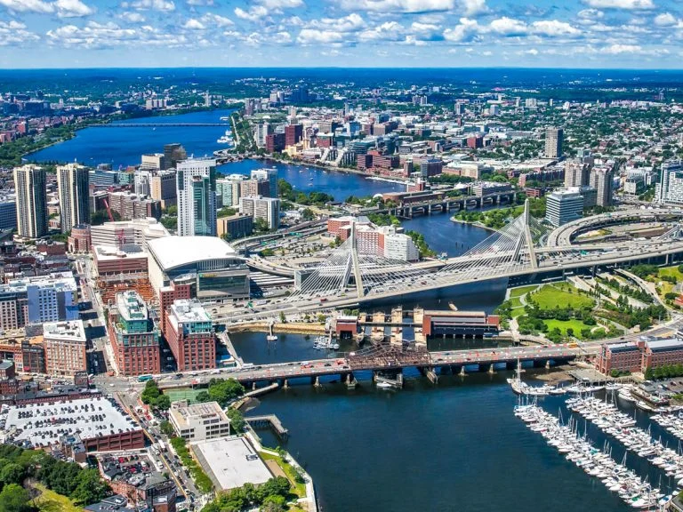 This is currently the widest cable stayed bridge in the United States. It is ten lanes wide. It was part of the Big Dig project. This bridge carries Interstate 93 over the Charles River.
